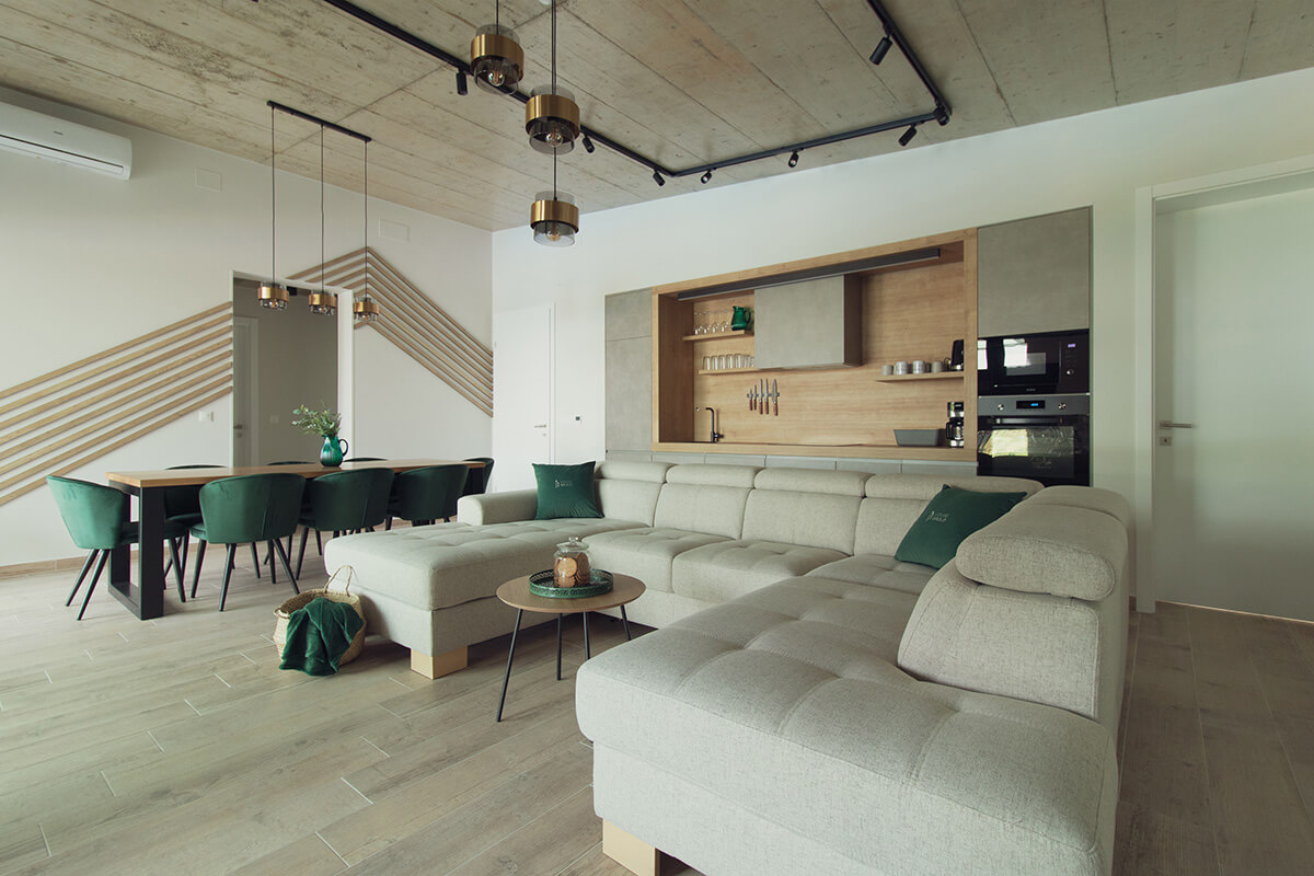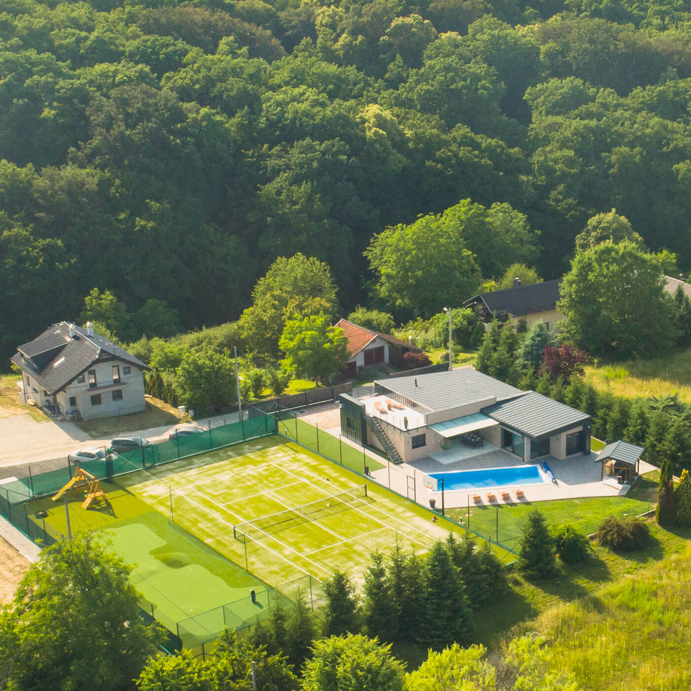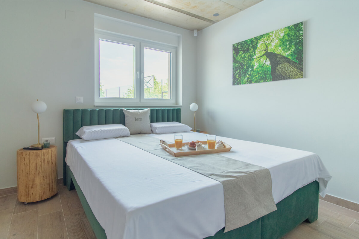 It offers unique experience in a family environment full of different content surrounded by nature where you can recharge your batteries by simply relaxing or taking advantage of numerous sports content (1000 m2 of tennis court, basketball, football, golf green with six holes, three golf driving ranges and kids’ playground plus walking, running and cycling routes in forest only 100m away from House Brulo) and entertainment content (PlayStation 4, table football and electric darts). All the equipment for sports is provided by the host including nine bicycles.